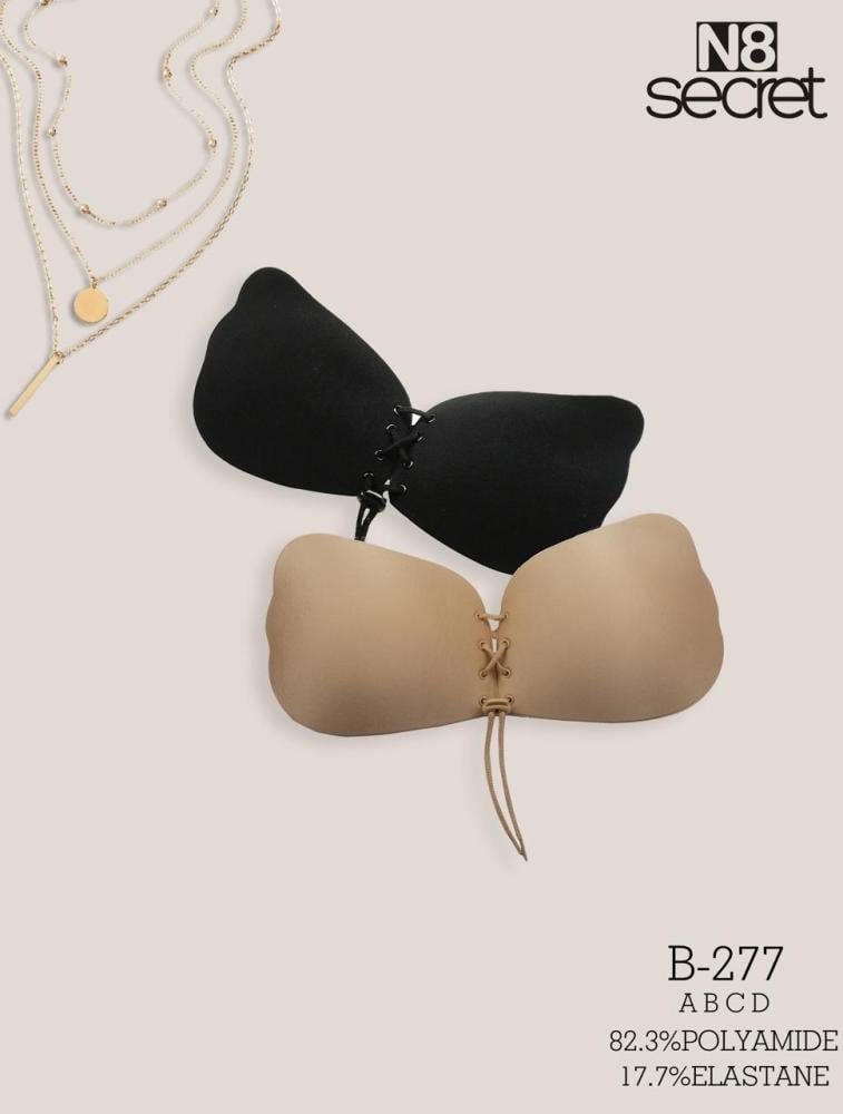 احصلي على المظهر المثالي والدعم اللازم مع حمالة الصدر اللاصقة B-277 من N8 Secret، التي تمنحك ثباتًا رائعًا ورفعًا طبيعياً بفضل تصميمها الفريد بحبال قابلة للتعديل. هذه الحمالة اللاسلكية هي الخيار المثالي للفساتين المكشوفة والملابس بدون أكتاف أو بفتحات في الظهر، حيث توفر لكِ الدعم دون الحاجة إلى الحمالات التقليدية.