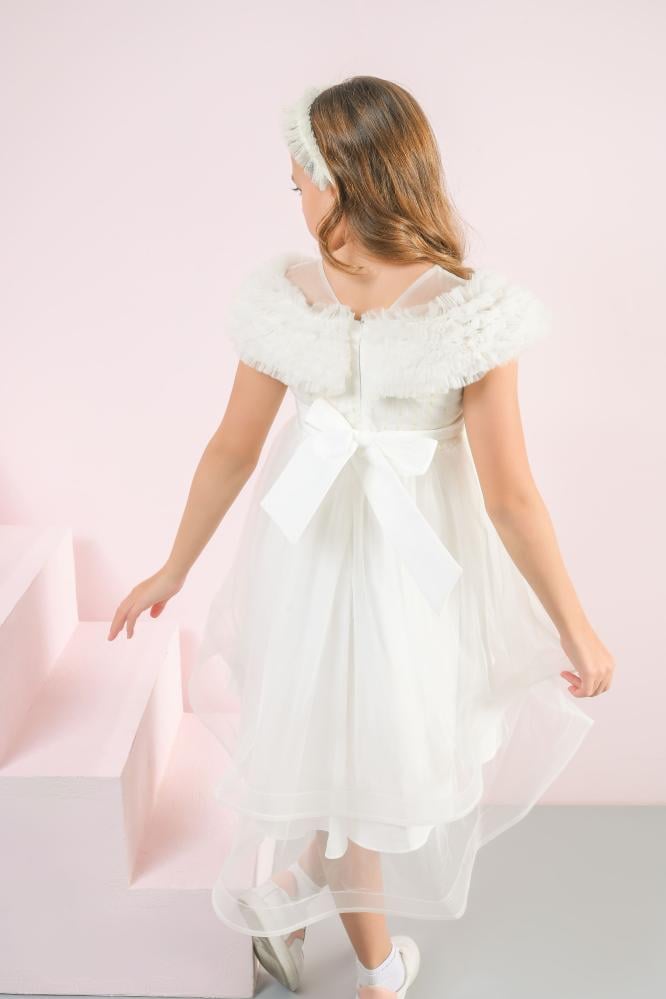 - المادة: تول ودانتيل ناعم ومريح للطفلة.