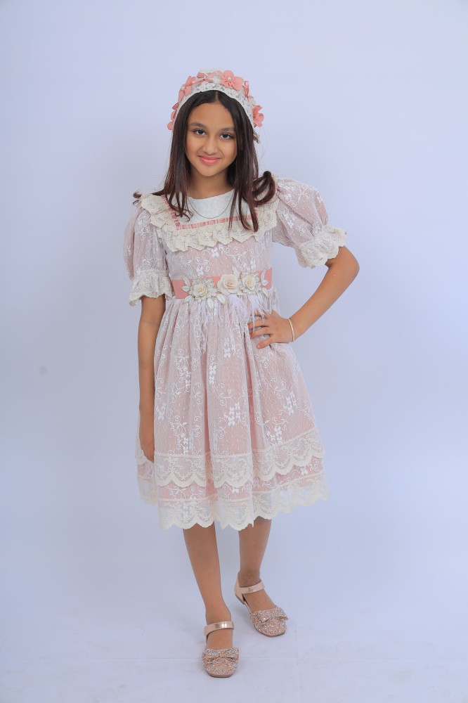 هذا الفستان البناتي المصمم بدقة يجمع بين الأناقة والراحة ليلائم جميع المناسبات الخاصة. يتميز التصميم بأكمام منتفخة وجميلة تضيف لمسة من الرقي، مع تفاصيل من الدانتيل الرقيق الذي يزين الحواف ويعزز من طابعه الكلاسيكي.