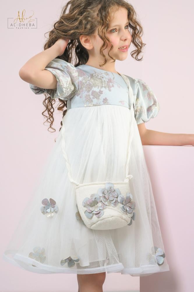 امنحي طفلتك إطلالة ساحرة مع هذا الفستان الفاخر المصمم بعناية ليمنحها الأناقة والراحة في آنٍ واحد. يتميز الفستان بقماش تول ناعم مع تطريزات زهرية أنيقة، وأكمام منفوخة تعزز الطابع الملكي المميز. إضافة إلى ذلك، تأتي معه حقيبة صغيرة مطابقة بتصميم زهري لمظهر متناغم وجذاب.